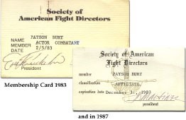 But by April of 1978 the SAFD had three classifications of membership, boasting six "full" members (defined as "professional fight directors"), 23 affiliate members ("fencing masters in drama schools"), and three student members ("students who aspire to become fight directors"). In July of 1978 a fourth classification, "friend," was added. Dues in those days were $15 for full and affiliate members and $10 for students and friends.